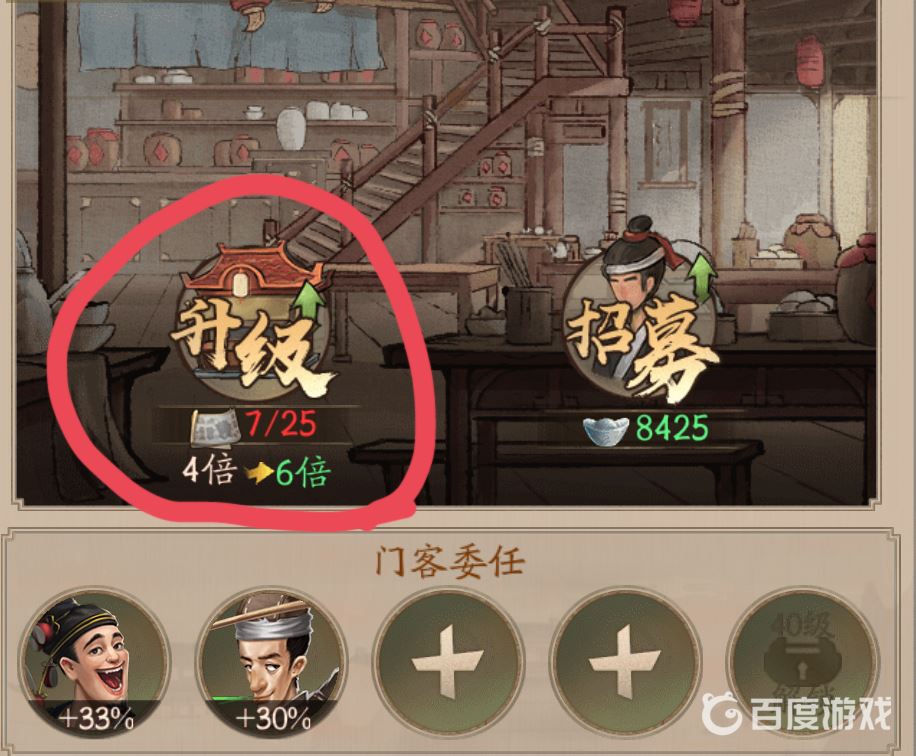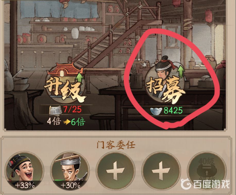 2、需要将餐馆升级至六级才能够解锁门客牛符师,当解锁之后需要到主界面的招募市场,然后点击已解锁,点击门客牛符师,点击招募就可以获得牛符师,他可以帮你赚更多银子。