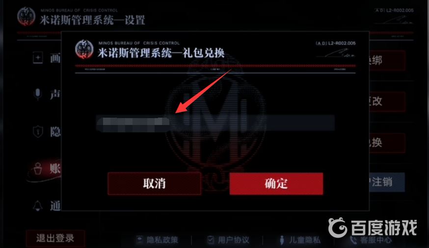 4、最后在箭头所示的位置输入兑换码即可兑换游戏礼包。