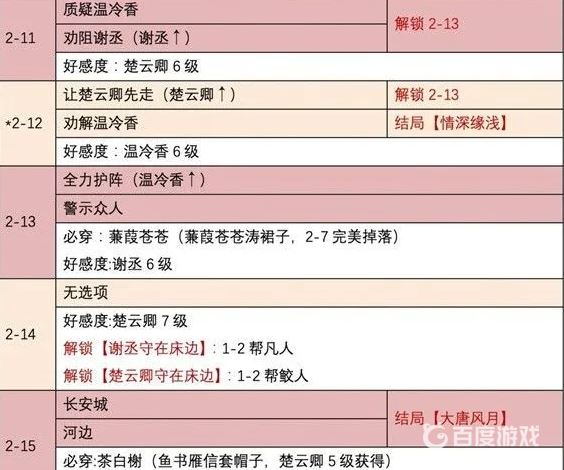 12:让楚云卿先走9(楚云卿),解锁2-13;劝解温冷香,触发结局【情深缘浅】。好感度:温冷香级6级。