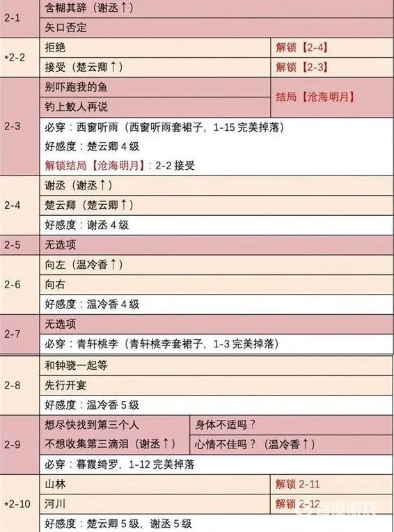 2:拒绝,解锁【2-4】;接受(楚云卿),解锁【2-3】