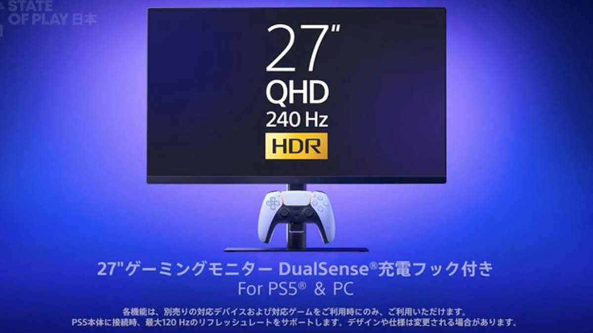 Sony 推出新型 PS5 强化游戏显示器 内建控制器充电挂架 支援 120Hz/240Hz