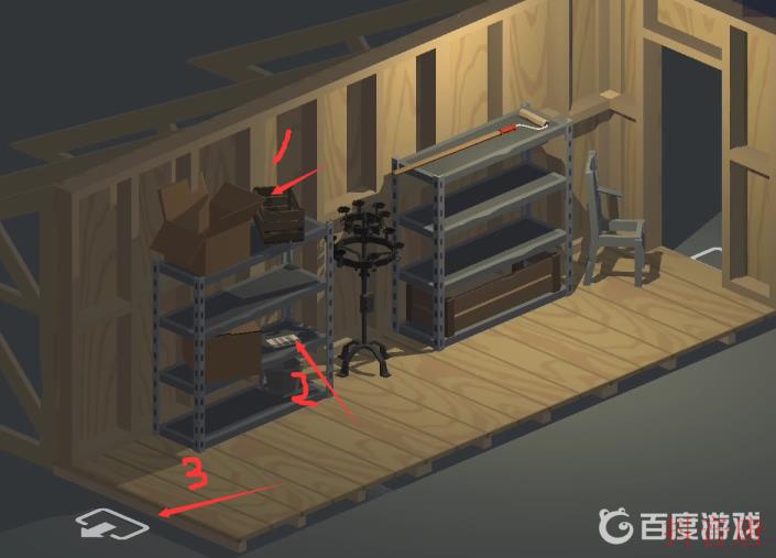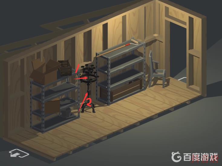 12.在阁楼箱子里可以获得蜡烛⑥,架子上获得图纸②,再进入下一场景。