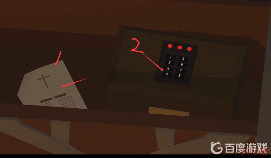 22.来到下图场景,根据密码箱背面图案顺序,得到密码4132。