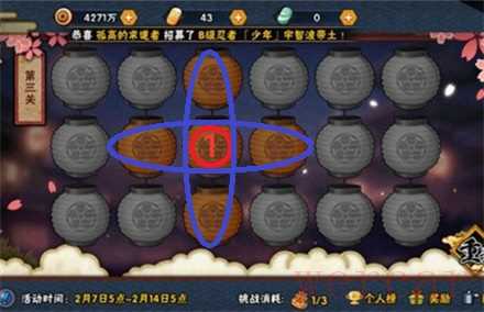万变不离其宗,火影忍者元宵花灯活动中的所以关卡都是可以利用“十字架”原理来破解的,无论关卡怎样变化,只要我们活用“十字架”即可百战百胜。