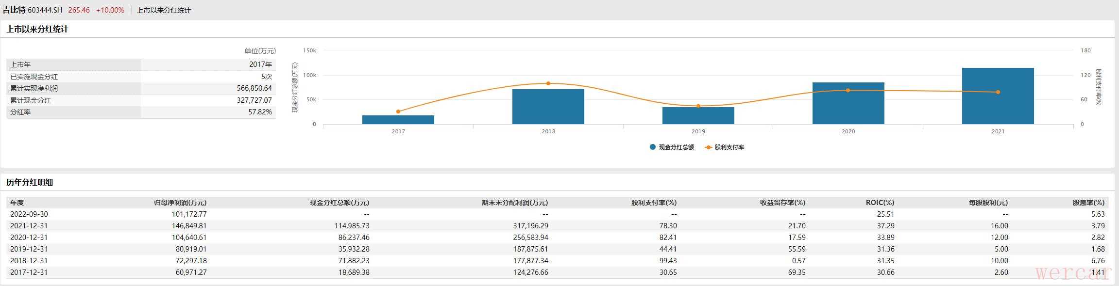 事实上,这并非吉比特首次大手笔分红。Wind统计数据显示,自2017年上市以来,吉比特累计分红6次,除了此次分红外,2017年至2021年,吉比特的现金分红总额分别为1.87亿元、7.19亿元、3.59亿元、8.62亿元、11.5亿元;股利支付率分别为30.65%、99.43%、44.41%、82.41%和78.3%。这意味着,其之前也有类似的“清仓式分红”。