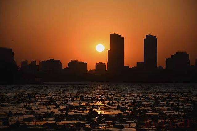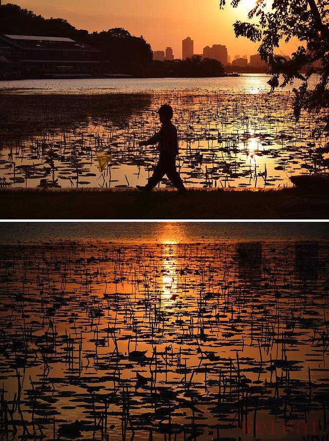 玄武湖的东部湖面上睡满了荷花。”接天莲叶无穷碧,映日荷花别样红”。每逢落日降临,城市的喧嚣渐归于沉寂,落日的余晖穿行在荷叶上,荷叶间,以及荷叶上栖息的圆滚滚的露水中,漫射出五彩斑斓的、无法用言语赞美的色彩。此时,三三两两的摄影师早已等候在湖边,架起长枪短炮,等待那一抹黄色转为赤红;带着萌娃的老小孩静立在湖边,眼神落在孩子那充满活力的,肉嘟嘟的胳膊和脸蛋上,充满温柔和岁月的缱绻;穿着宽松的袍子的僧侣沿着河堤向前,脚步轻盈而充满悲悯和坚毅,偶尔抬起头,眼神穿过诺那塔尖上停歇的金光,那光仿佛蕴含着人生的无穷哲理。