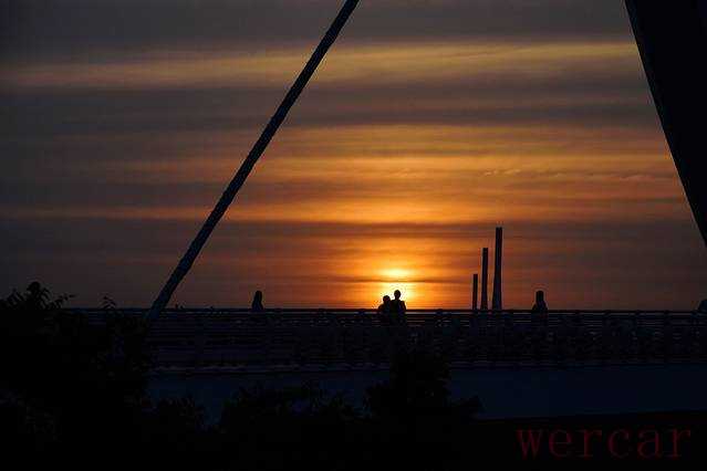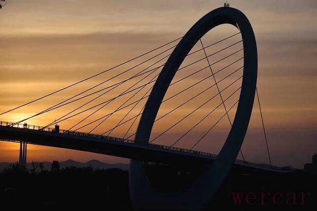 横跨南京长江夹江的南京眼,是长江上首座观光步行桥。羽翼般斜拉的钢索振翅向上,就像竖琴的琴弦,行人穿行其间犹如琴弦上跳跃的音符,一经落成便成为南京的新地标。夕阳下的南京眼更是美的一塌糊涂。由蓝变黄,转而成淡淡的粉色,然后红的发紫,每一帧都是视觉的享受。