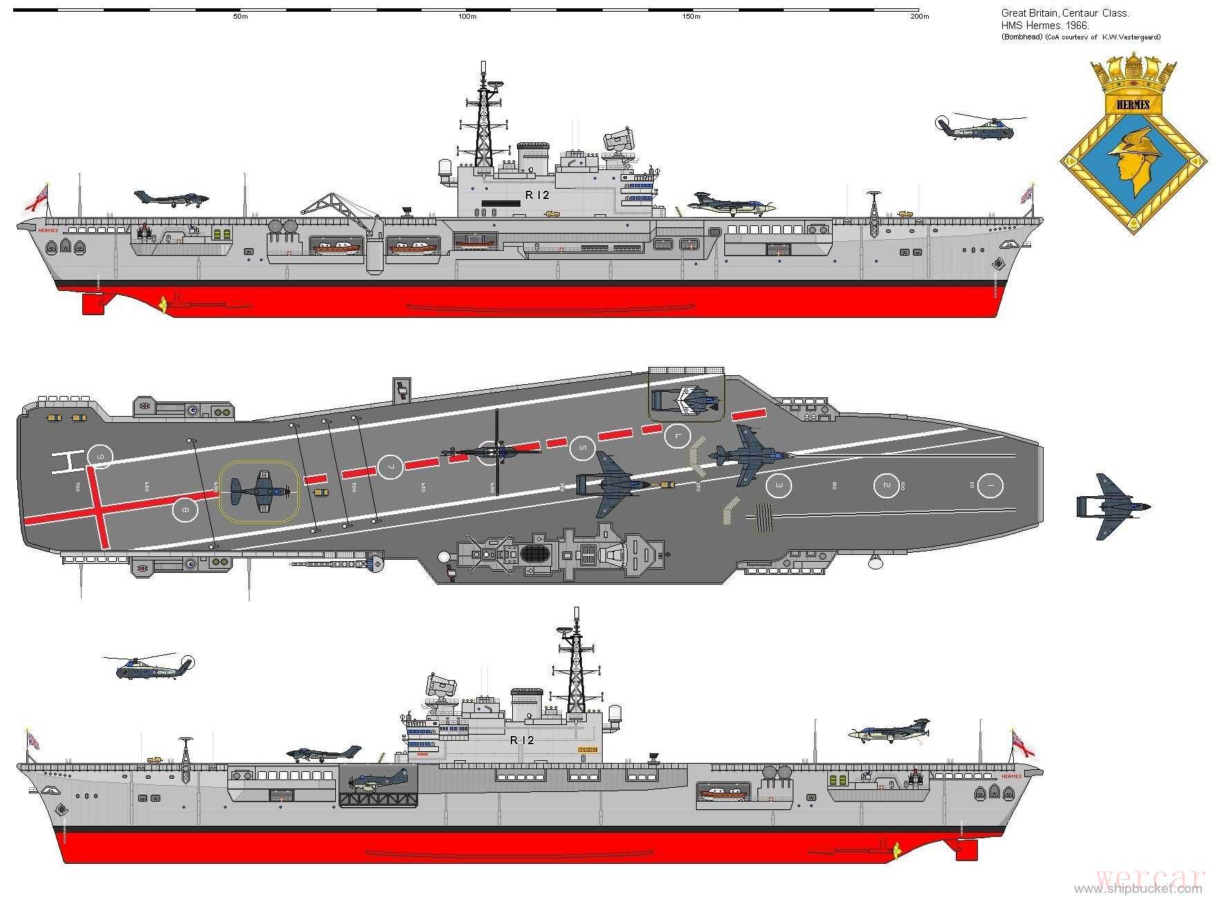 我们在此之前介绍过二战期间英国航母部队的实力,以及其在二战中的表现。英国在二战结束时,一共拥有十几艘正规的航母(常规或者轻型)。而如果战争在1946或1947年结束的话,英国将会拥有30多艘航母。因为在战争结束时,英国还有十几艘航母停在船台上,或者下水了还没有完成总装工作。这些没有完工的航母,在二战结束后,由于英国海军不再需要如此多的航母,便部分被拆解,或者是出售给其他国家。而本文要讲这些战后航母中,最特别、最传奇的一艘,即半人马级航母中的一艘,"竞技神"号( HMS Hermes 舷号R12)。