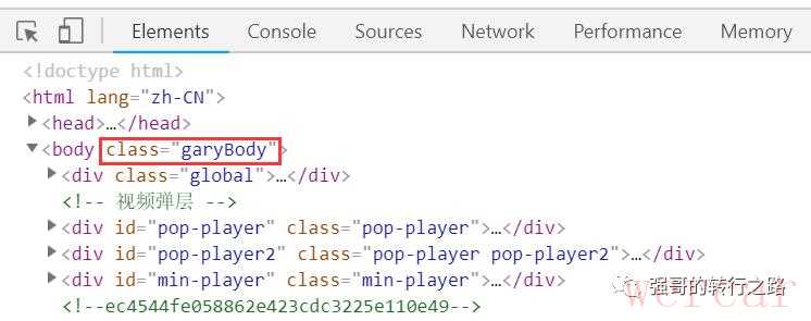 果然,我们可以看到在首页的body标签上有一个名为garyBody的class(这里我们猜测可能是开发小哥哥手误把gray灰色的英文敲成了gary),然后这个类名的css是下面这样的: