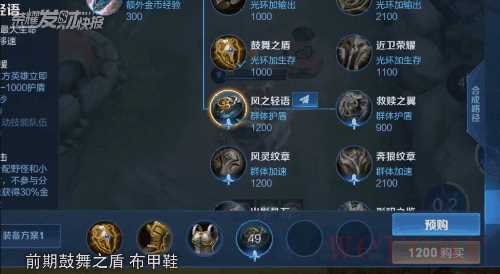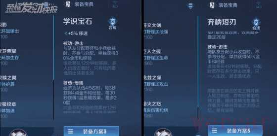所以出装顺序为弃鳞短刃、布甲鞋。出完这两件装备,为了避免吃到队友经济,我们需要补一个学识宝石,时间一般为3分30秒左右。接着再将弃鳞短刃升级为龙鳞利剑,学时宝石升级为鼓舞之盾,之后再出个冰心,鼓舞之盾升级为近卫荣耀,然后再出个永夜,将龙鳞利剑升级为三级打野刀,最后可以补一件霸者重装。