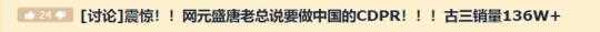 网元圣唐的老孟之前总是说想做“中国的CDPR”,实际上在X博士看来是自己限制了自己的思路。不仅仅是中国厂商,很多玩家对国产单机也有着“不合时宜”的期待,看到外国单机游戏发展的多么多么好,然后国内就一定也要发展多好。完全就不看国内民众的消费水平和玩游戏的环境氛围。