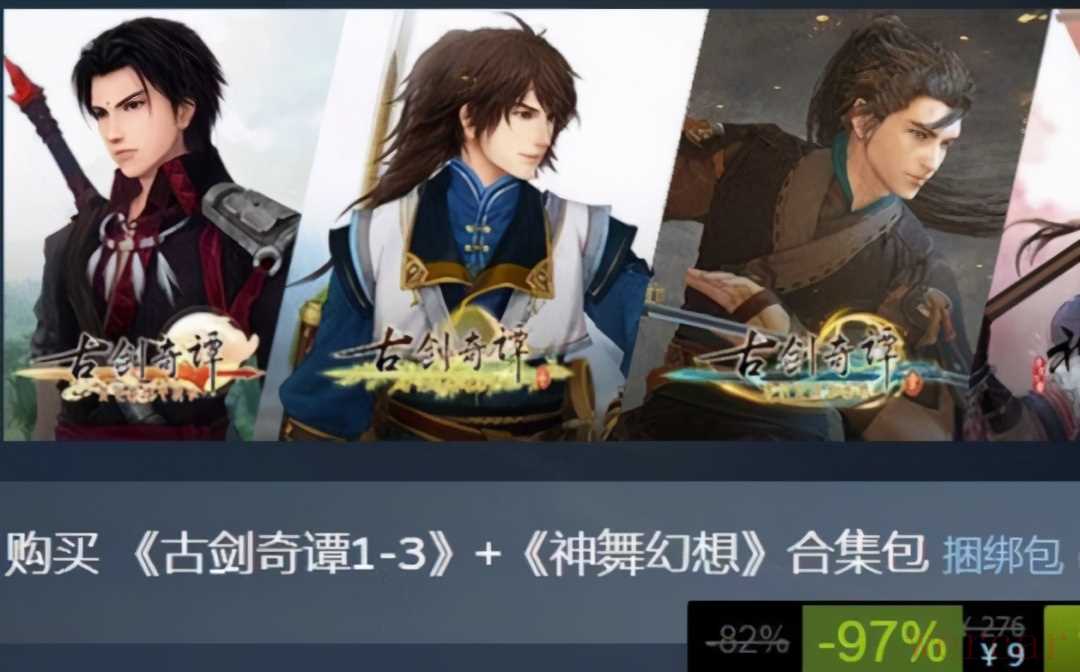 甚至还玩出了《古剑奇谭1+2+3》+《神舞幻想》打包价只要9块钱的白菜价!(虽然不到半天这个捆绑包被下架了)
