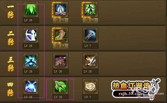 在37《热血江湖传》中,弓箭手相较于其他职业的区别是,其他职业大多需要点一下过度技能,可是弓箭手不必,首先要点的是猎鹰之眼,如开篇所言,弓箭手需要的是游走,是距离的把握,距离越远,弓箭手的震慑力就越强。而猎鹰之眼就是专门增加攻击距离的,所以必点。然后是弓箭手的输出技能,主要有四大输出技能,全都要点了,这是立足之本。