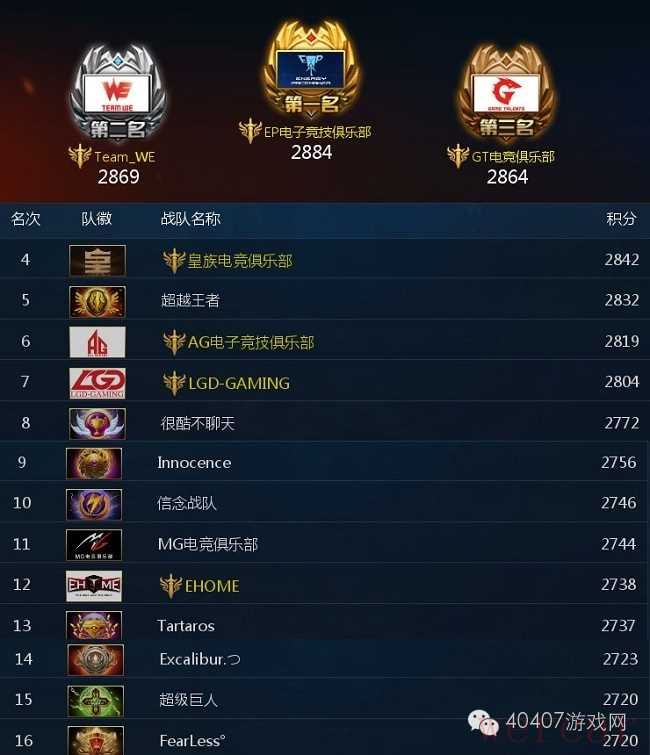 英魂之刃CPL职业联赛战报-积分赛最终排名