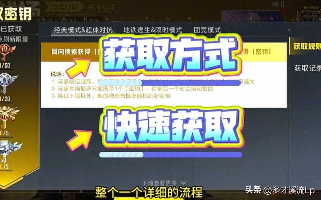 那密钥咋搞呢?分几种模式来说。经典海岛、超体对抗模式里,只要你个人结算排名前30,搜空投箱、信号枪箱这些道具就有概率拿到。地铁逃生模式更简单,只要成功撤离,搜垃圾桶、工具箱这些都可能出密钥,而且这密钥还能扔地上给队友,也能跨区送好友,够义气吧!团竞模式里,拿到MVP或者胜方前几名,也能得密钥。