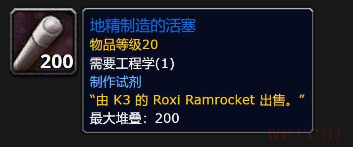 机车的引擎似乎需要4个地精制造的活塞,每个售价1000金币,可以在锦绣谷的大基奇或风暴峭壁的洛克希·冲火处购买。
