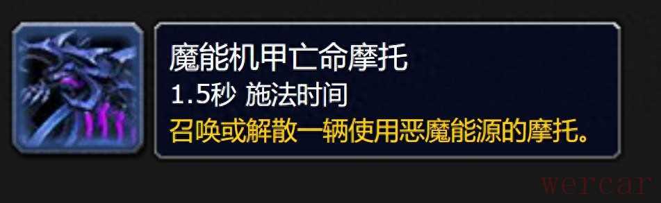 摩托车介绍:召唤或解散一个以虚空为燃料的魔能机甲亡命摩托。