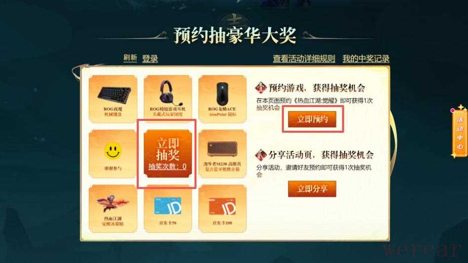 3、在该游戏页面点击活动,进入预约抽奖界面。点击立即下载获得抽奖机会。
