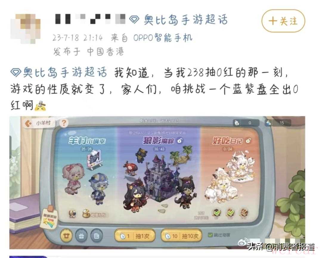 尽管《奥比岛》手游按规定公布了抽奖概率,但玩家为了获得心仪的限定奖品,难免不得不花费更多的金钱。那么,对于不氪金的玩家而言,该游戏失去了“快乐没烦恼”的初衷,他们只能对着0.08%的抽奖概率望洋兴叹。