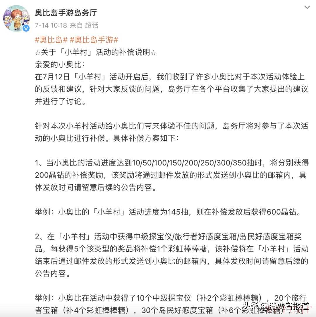 7月14日,《奥比岛》手游针对此事发文回应称,“小羊村”活动是一种全新的活动形式,非常抱歉因为岛务厅对本次活动的考虑不周,给许多参与活动的小奥比(玩家)带来了不好的体验。并表示针对此次活动给玩家带来体验不佳的问题,将给玩家进行相应的补偿。