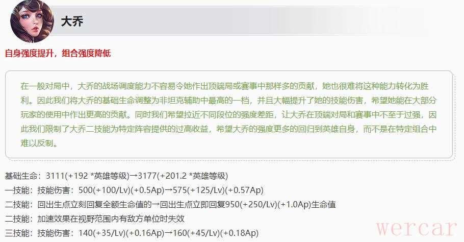 这是一个很有趣的现象,确实在大乔被削弱后,她的胜率不降反升。这看似矛盾,但实际上背后有几个关键原因: