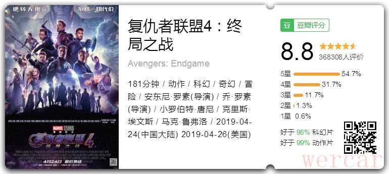 《复联4》豆瓣评分达到8.8分,为漫威宇宙22部电影最高