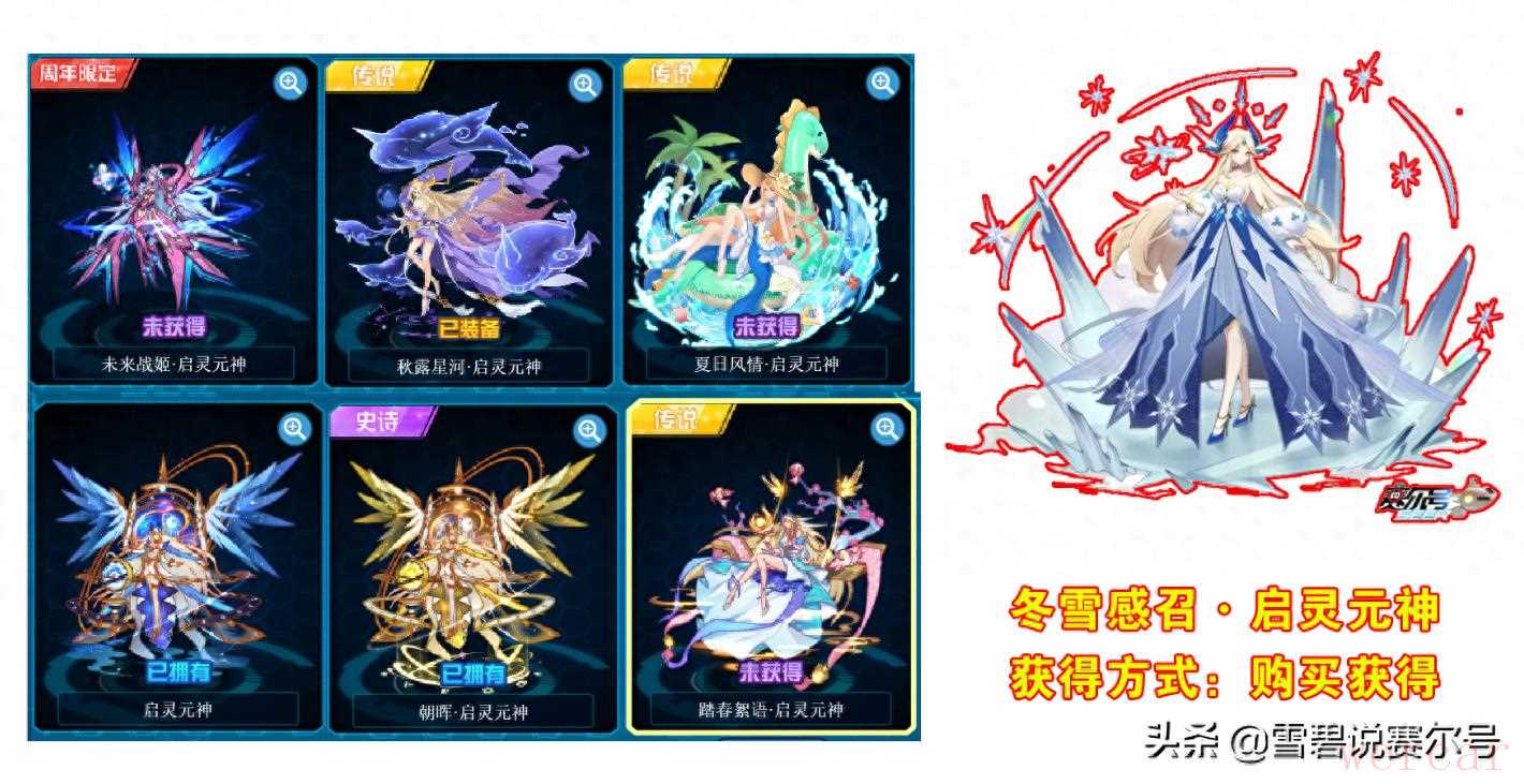 可惜了天尊,是目前年费精灵中唯一一款没有皮肤的双形态精灵。希望后期能出个反转系光明型皮肤吧,毕竟天尊出场就是复仇者,给个恶党皮肤反倒是不太爽。如果不出意外,这次元神的上线价格应该也是398钻石卖的,附带打折券。