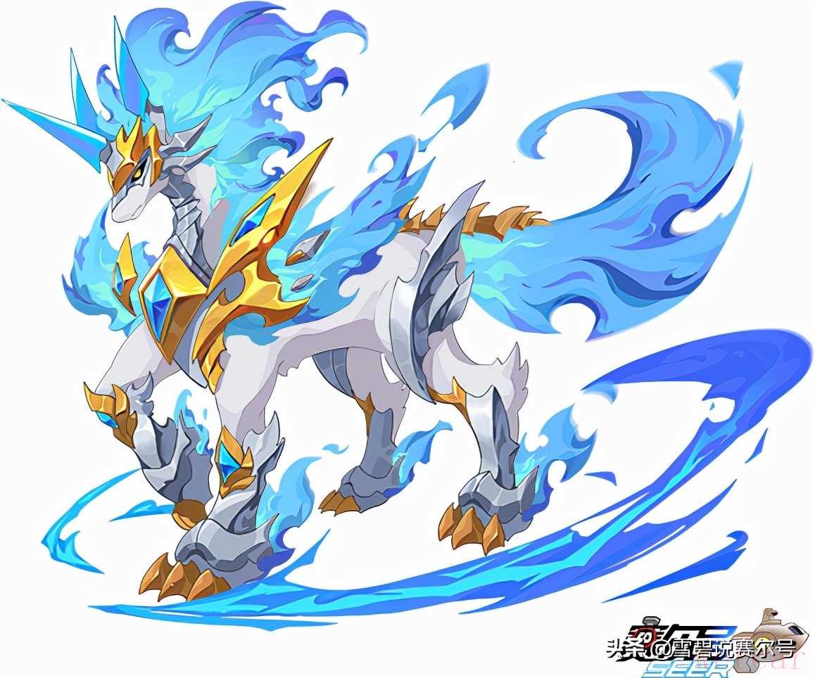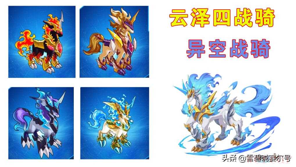第一眼过去还以为2014年龙尊麾下的【云泽四战骑】再度进阶,但看到属性后就放弃了这个想法。主要还是因为四战骑属性没有一个与其对上的,最相近的颜色的一个贝德尔还是超能水,所以判定这个精灵应该是个新精灵。