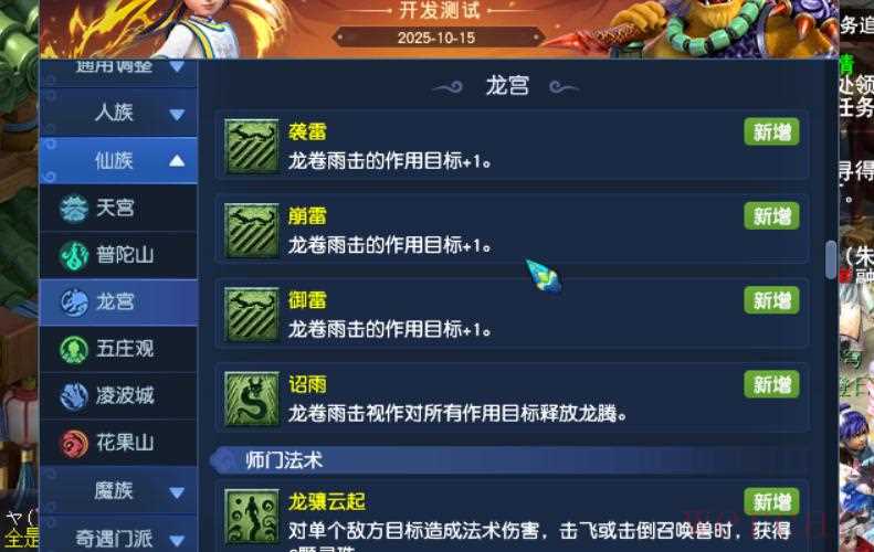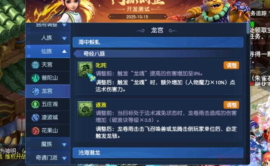 以下是对梦幻西游中大唐、龙宫门派经脉调整的概述,以及一些可能的变化和影响。由于游戏版本更新较快,具体细节可能需要参考最新的游戏公告和资料。