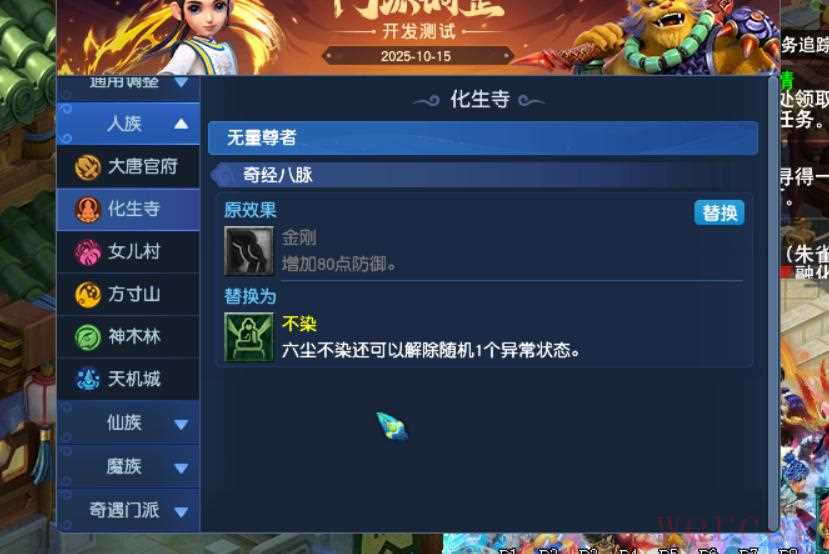 2、化生寺金刚丹改成不染,六尘不染还可以解除随机1个异常状态。