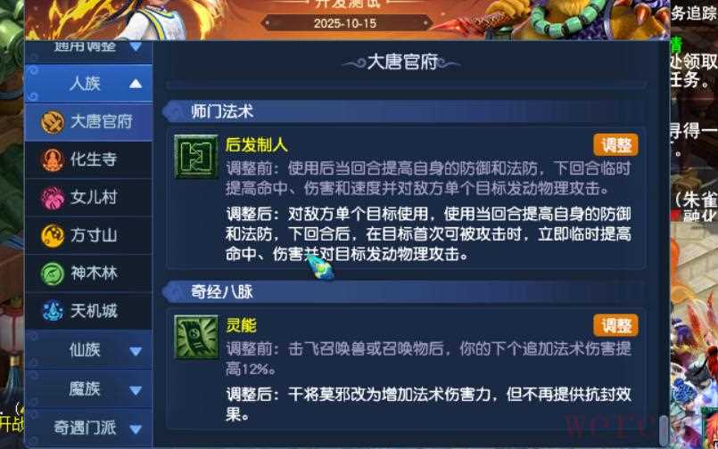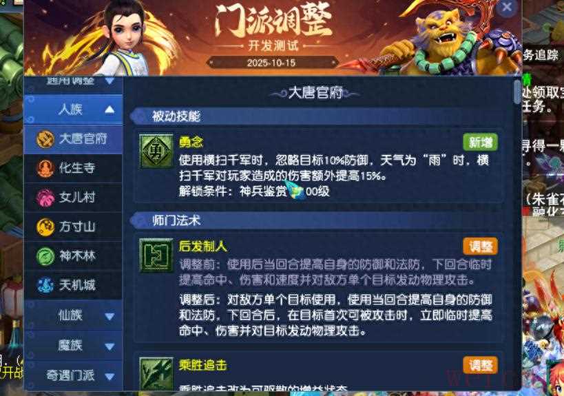 大唐门派一直以来以其高伤害的物理输出著称,经脉调整可能会进一步强化其输出能力,或者增加一些新的战术玩法。
