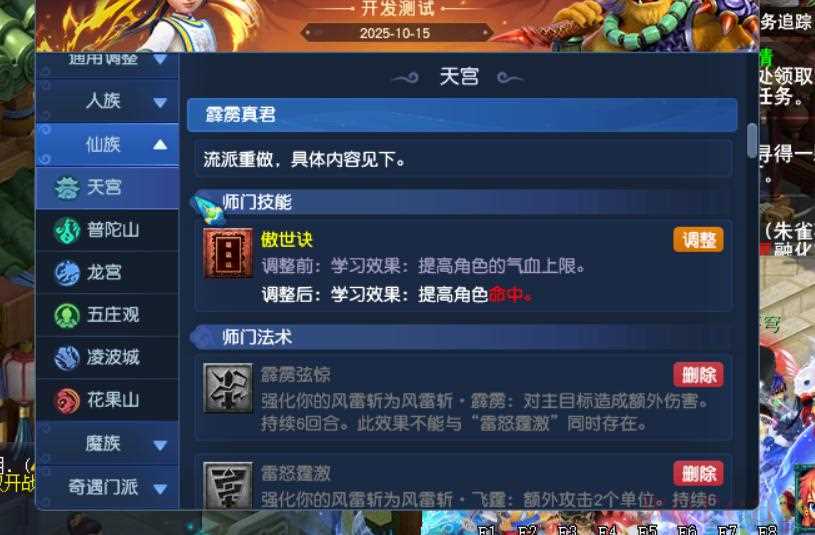 霹雳真君流派改动,傲世诀的学习效果不再提升气血上限,改成提升角色命中。第三流派的面板伤害会大大增加。
