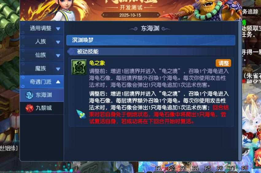 19、东海渊被动技能龟之象增加一个效果,回合结束时处于倒地状态,则爬出1只海龟,尝试复活自身。