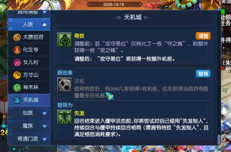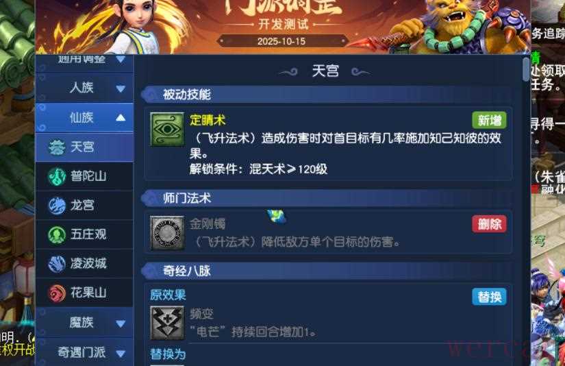 天机城以后要必带先发制人这个特技了。7、天宫增加师门被动定睛术,造成伤害时对首目标有几率施加知己知彼。