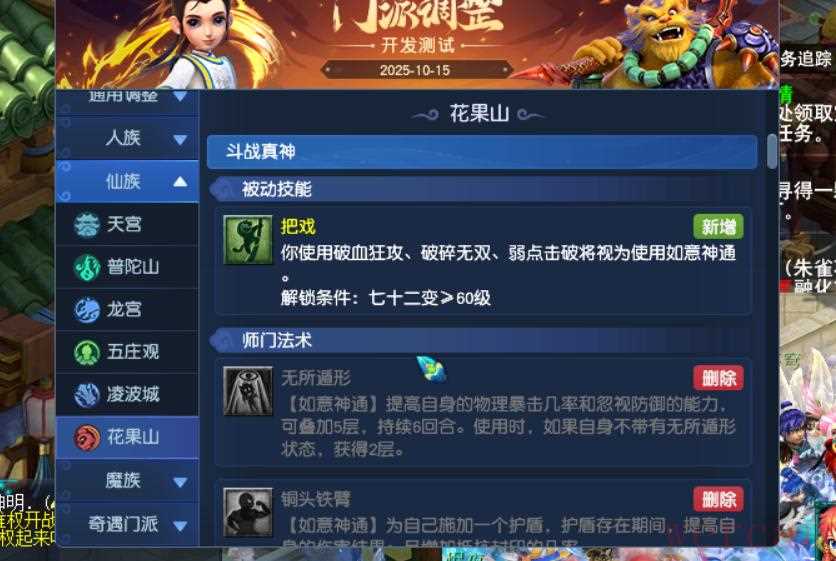 12、花果山斗战真神经脉重做,师门被动,破血破碎弱点特技视为如意神通。