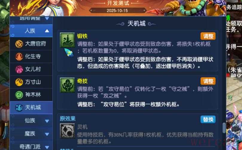 6、天机城锻铁丹改动,受到致命伤害损失机枢直至取消偃甲,改成了造成的伤害降低。
