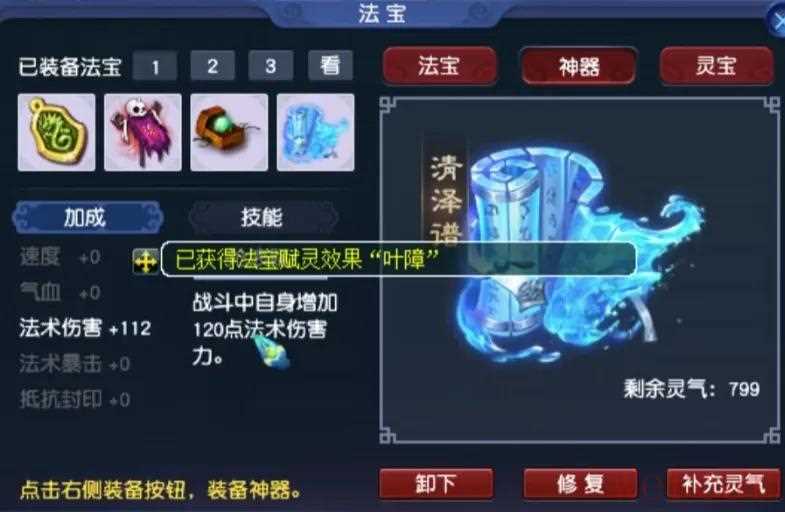 神器加成则是112点法伤,属于最顶尖的配置。2、装备展示