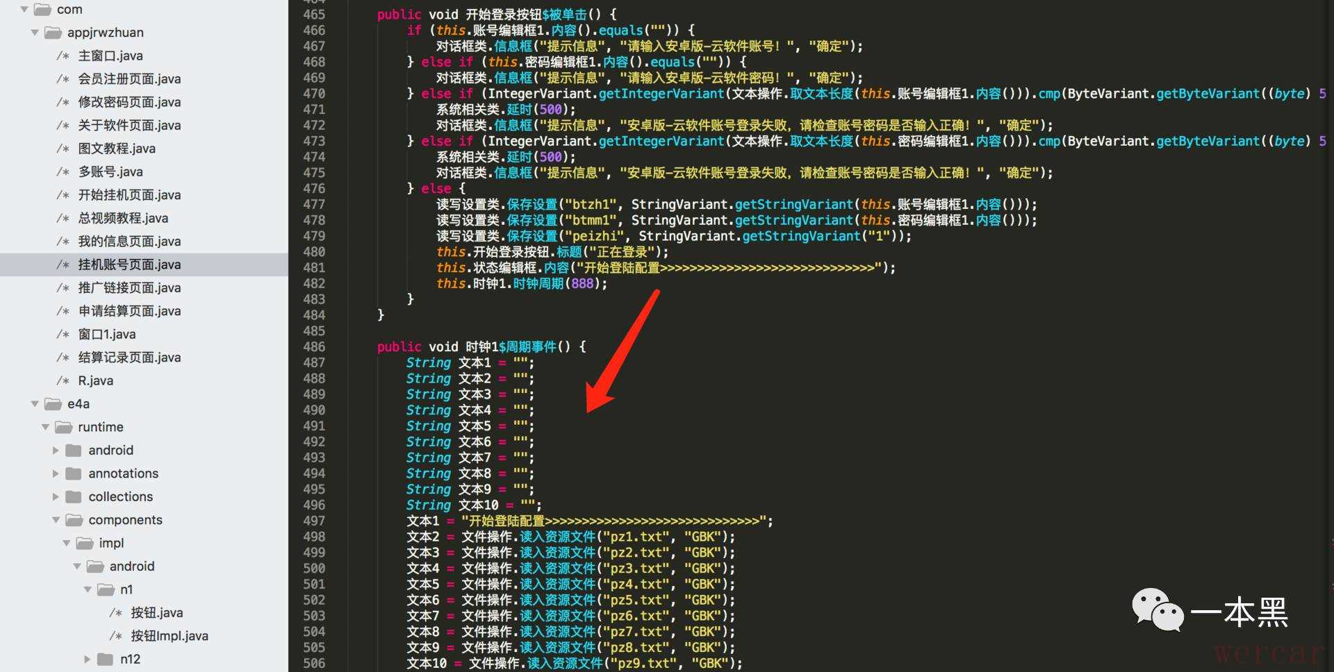 老师傅先是通过技术手段拿到了这款挂机软件安卓版本的源码,发现该软件由【易语言】开发,这款软件在挂机之前需要配置一个账号进行挂机设置,才能正常使用。