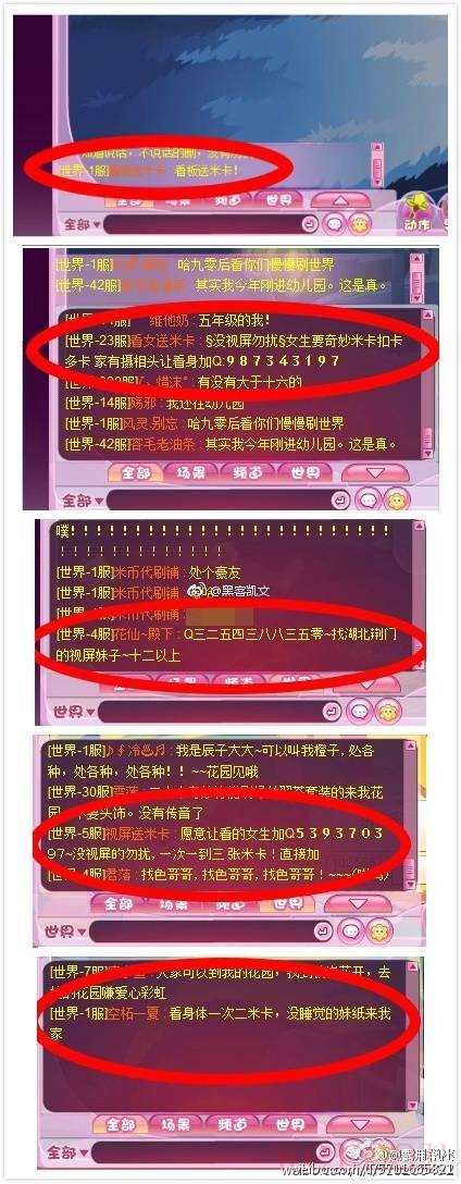 他们的套路是先在游戏里的信息平台用购买套装的“米米卡”或者米币女玩家来自己的“家”。然后在“家”中留下联系方式,哄骗女孩子给米卡、米币。