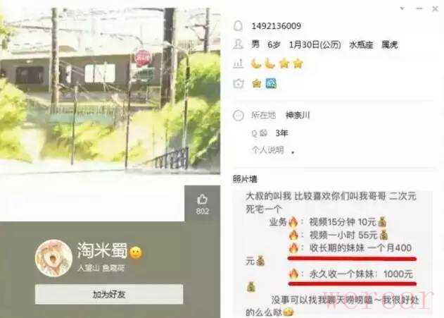 加了以后,便开始要发照片,要视频。有的人开门见山介绍视频价格:“十分钟一卡,二十分钟2卡,三十分钟三卡。”一卡相当于10元人民币。还有人直接问:“能不能看你的胸?”也有人把曾经交易成功的记录发在空间里。