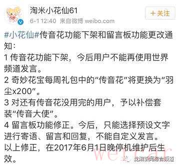 随着这次网络的发酵,《小花仙》官方在6月1日终于出来整治,下架世界频道聊天功能,以及修正留言板功能。同时,淘米客服将提交的有关“怪蜀黍”的ip地址进行处理。