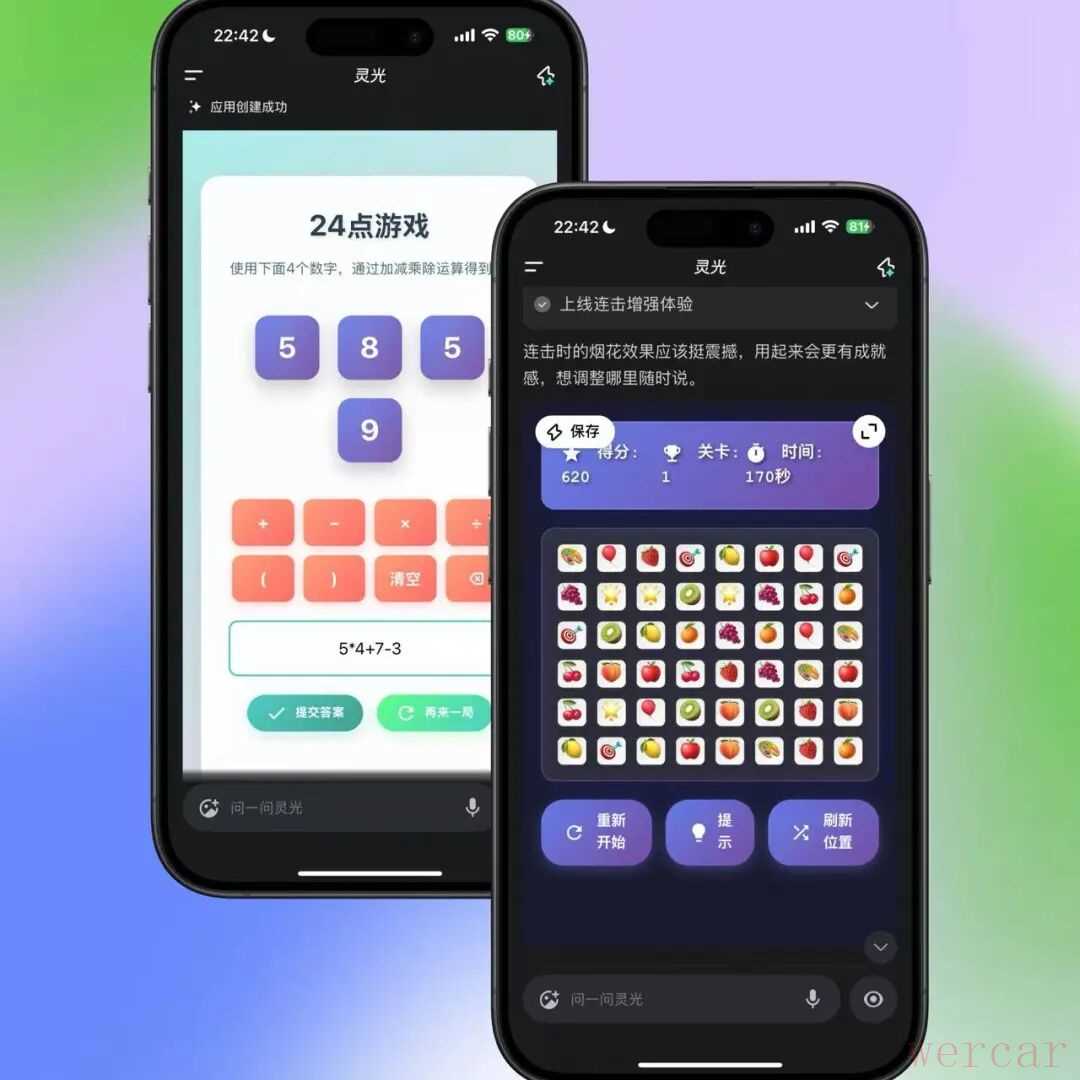 一口气搓了七八个游戏,说实话,我即使作为写了这么久代码的前程序员,这种震撼感依然很强。必须要说清楚的是,大家千万别拿灵光生成的这些游戏去跟《黑神话》这种 3A 大作比,那没有可比性,也不是一个维度的东西。灵光这次更新,真正让我觉得「炸裂」的地方在于,它展示了 AI 的一种新能力——对逻辑和规则的深度理解与生成。以前我们用 AI,是让它生成一段文案、一张图,那是静态的。但今天,我在灵光里说「把滑块换成小动物」、「相邻滑块不能交换」,AI 是听懂了游戏规则,并实时重写了背后的逻辑代码。还记得 OpenAI 的 Ilya 曾经说过的 Scaling Law 吗?当模型大到一定程度,它不仅是预测下一个字,它是在构建世界模型。灵光生成的每一个小游戏,其实都是一次微型的「世界模拟」**。它知道重力怎么算(跳一跳),知道碰撞怎么算(消消乐),也知道怎么哄小朋友(给我儿子做的那个识字游戏)。这就是我们一直期待的「生成涌现」。对于普通人来说,这更是一次彻底的平权。以前你想做个游戏哄孩子开心,你得学 Python,得找素材,得调试半天。现在在灵光这里,你的想象力,就是唯一的编程语言。不管你是想做一个专属的纪念日小游戏,还是像我一样为了哄「小橘子」学数学,甚至只是为了整活恶搞一下朋友,门槛都已经降到了 0。只能说,蚂蚁这波,确实把玩 AI 的上限又推高了一截。最后,别光看我玩。强烈建议大家去下载灵光 APP,点开「闪应用」,在对话框里输一句「做一个 xxx 游戏」。哪怕是最简单的「做一个石头剪刀布」,试着去改改它的规则,感受一下那种「言出法随」的快乐。做出来了记得在评论区交个作业,或者把链接甩出来,让我看看谁的脑洞最大!