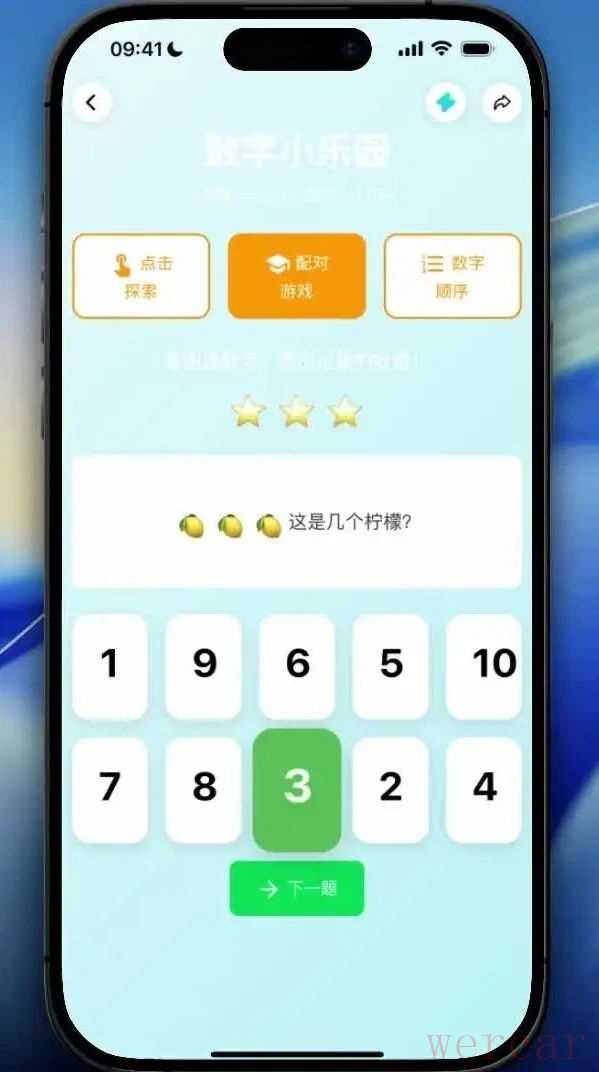 好,开心消消乐这波整的很过瘾,灵光生成速度很快,而且指哪改哪,让小游戏创作变得如此简单。那这就有意思了,我家有个 2 岁多的宝宝,每次教他数字,可痛苦了,特别想做个小游戏来辅导他学数字。于是输入需求:帮我做一个认识数字 1-10 的游戏出来效果还不错,同样自带音效和三种不同玩法。