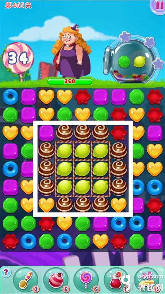 女巫:对于这个胖胖的女巫,大家应该都很熟悉了,基本上主线每5关就会见到她的踪影。本关女巫在第27步、第20步、第13步、第6步会随机扔出N个柠檬果。单次消除打掉女巫15%的血量,女巫就会被打晕,无法施魔法。