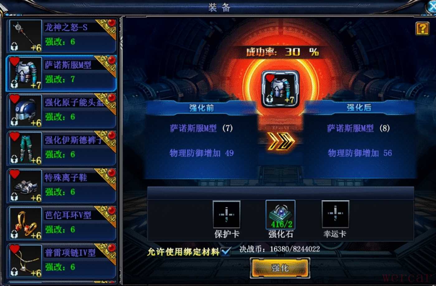 战力提升的第一步,必须从装备强化下手——这是游戏里最直接、最省心的变强途径。不管是日常任务给的强化石,还是活动奖励的进阶材料,统统优先砸在身上正在穿戴的装备上,资源集中才能效益最大化。这里有个萌新必知的小技巧:装备强化到高阶时(+7以上),一定要记得用保护卡!它能帮你避免强化失败后等级清零的惨剧,让辛苦攒的资源不打水漂。如果想冲刺更高等级,搭配幸运卡或强改卷轴提升成功率,每一分投入都能精准转化为攻击力和防御力,打副本再也不用靠队友“带飞”。
