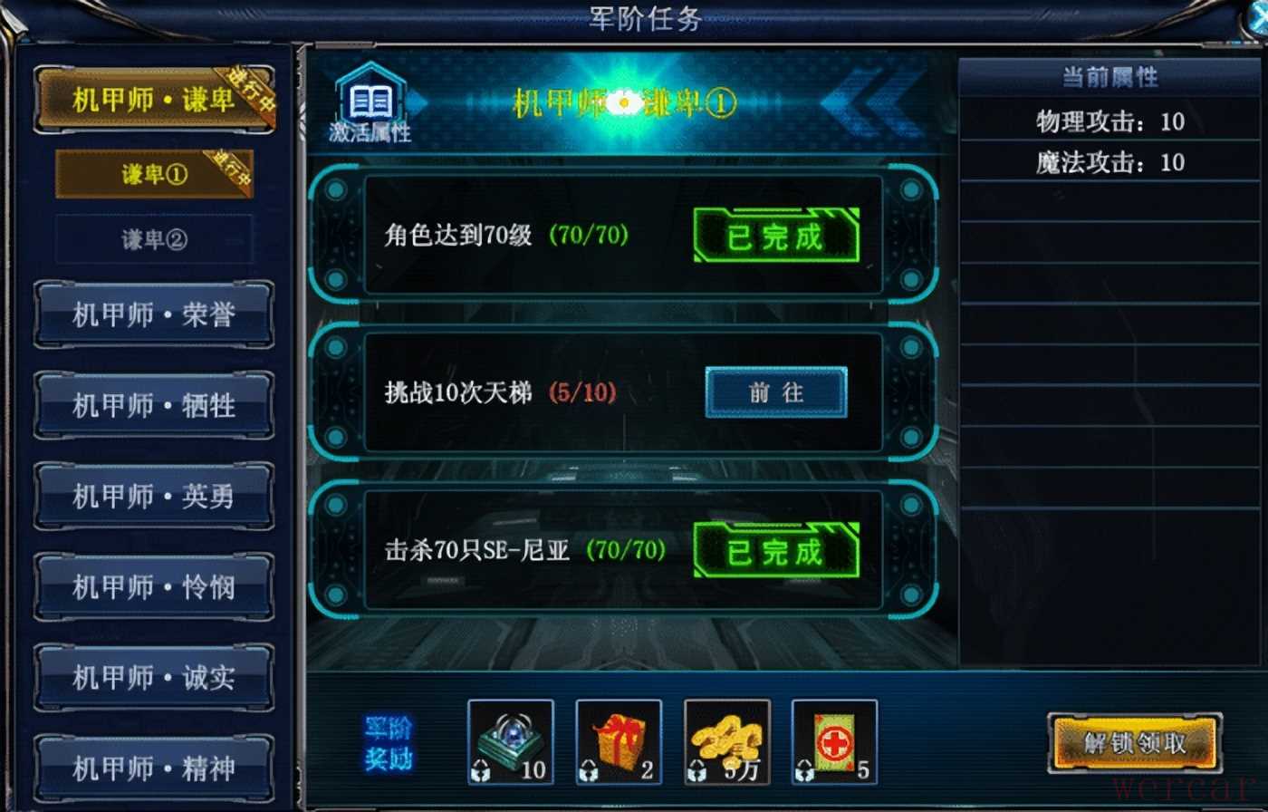 如果说强化是“临时buff”,那军阶提升就是“永久属性”的稳定来源。每天花点时间做军阶任务,无论是日常的简单跑腿,还是组队挑战副本,都能积累声望升级军阶。随着军阶提升,攻击、防御、生命值等基础属性会永久增强,高阶军阶还能解锁专属称号,不仅有排面,还能叠加额外属性,越玩越强势。