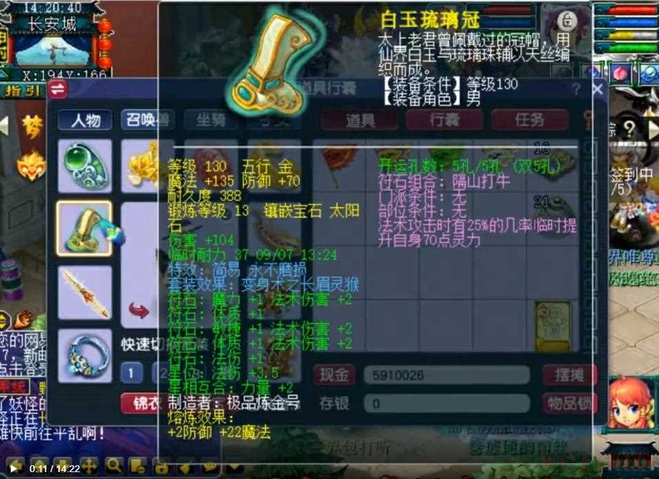帽子:130简易+不磨+长眉灵猴男头,打13段太阳石只为追求极限法伤【注意看他符石是怎么选择的】