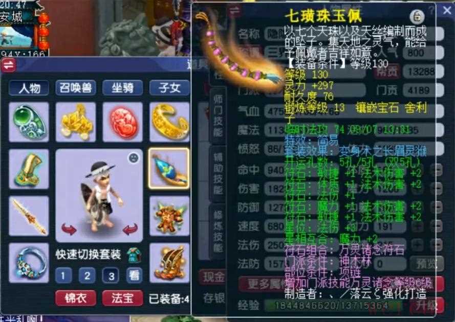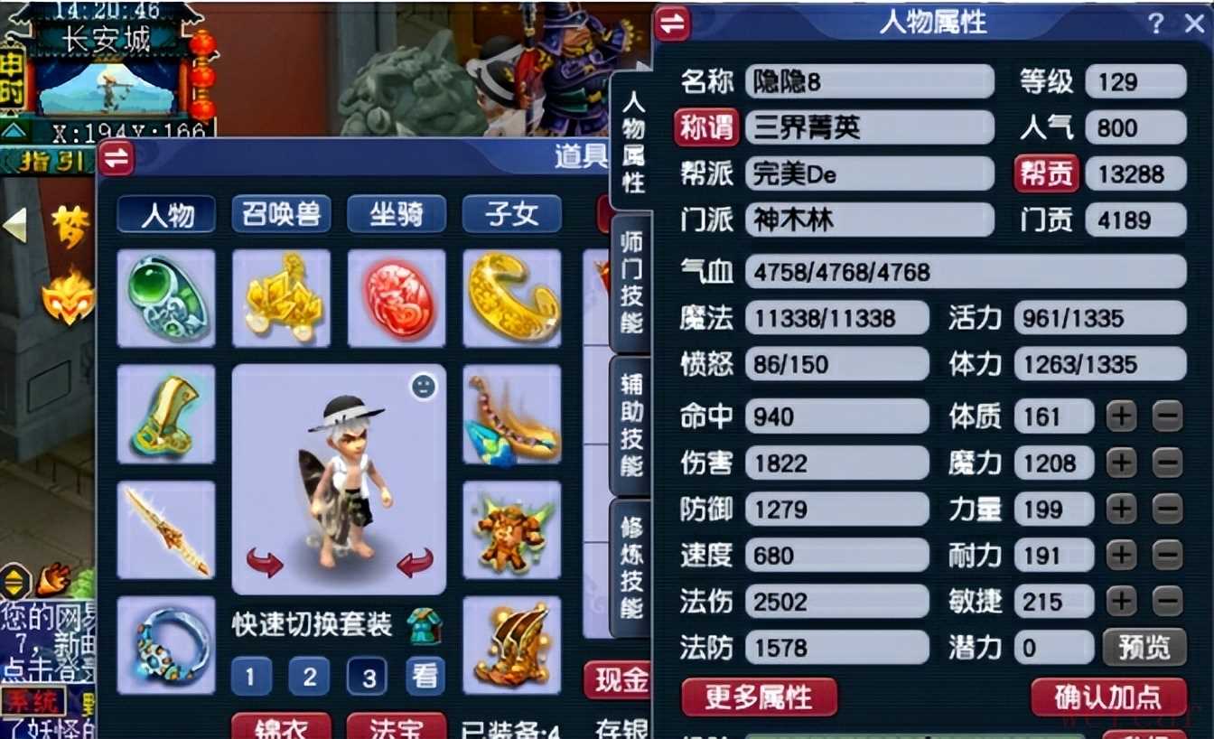 首先是人物属性全身没有无级别但是法伤到了2500,关键是速度也有680怎么做到的呢?主要是装备上的各种细节