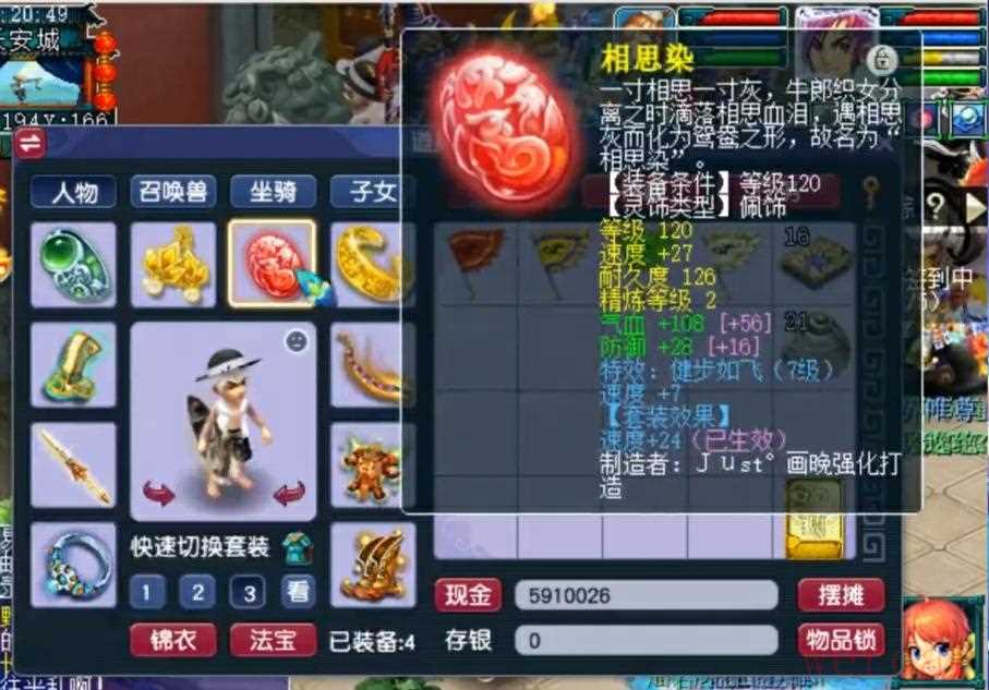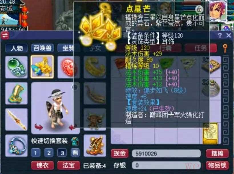 耳饰:法系的牌面,4法伤10段注意看他的灵饰套装,选的8级健步如飞......为速度真的太拼了.