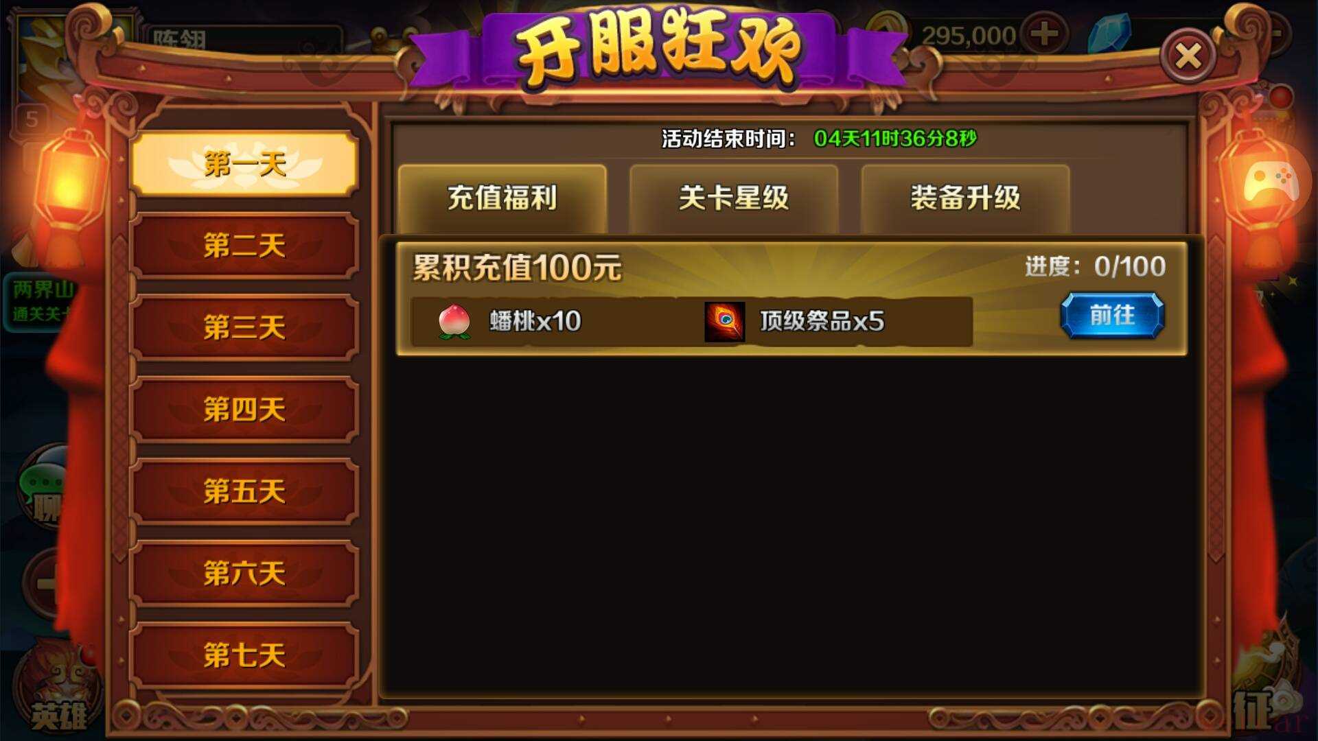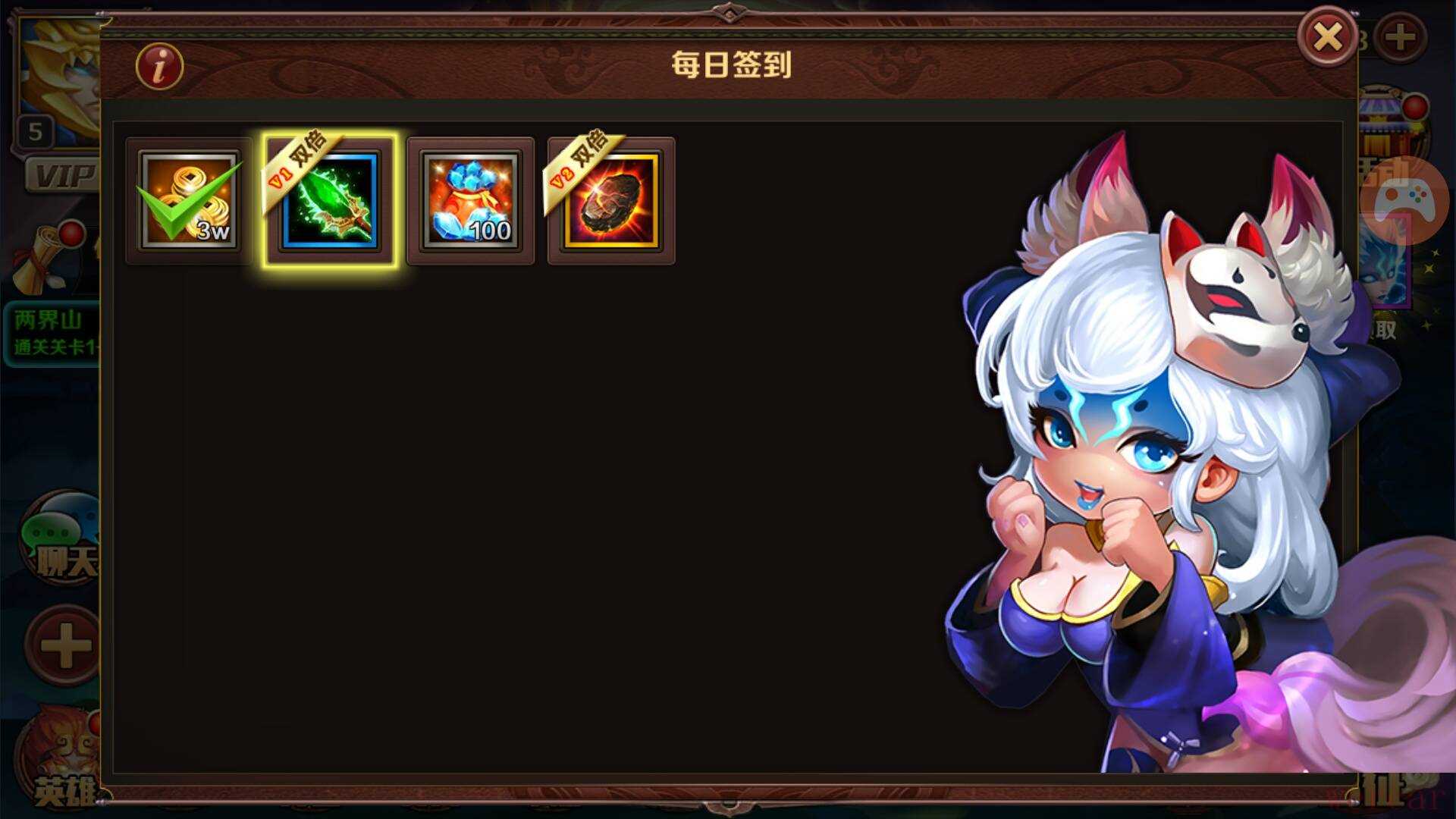 进入《大闹天宫:》后,大家会发现游戏的主界面相当“凌乱”,充斥着各种系统按键以及公告文字,但是仔细研究后会发现界面虽乱分类却很明确。游戏界面分成上下两个部分,下方是关于游戏玩法的一些按键,比如出征、秘境等等。而上方就是关于消费方面的一些按键,详细搜寻一番后玩家很容易发现签到按键,这时要毫不犹豫的打开进行第一天的签到,签到后便能领取30000金币。在活动界面中玩家还能看到很多福利性活动,比如冲级奖励,顾名思义只要角色达到规定等级就能领取丰厚的奖励,从10级开始,每提升5级均有金币、钻石祭品、药水等奖品。登录有礼带给玩家的奖品同样非常丰厚,第一天登录游戏可领取100钻石、5W金币和2个蟠桃、第二天登录游戏可领取500钻石、10W金币和1支魔杖……总之,前七日登录均有厚礼相赠,玩家一定要好好把握。
